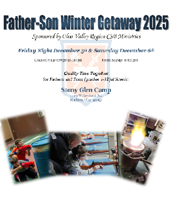 Father & Son Spring Getaway 2025Sponsored by Ohio Valley Region CSB Ministries Friday Night May 2nd & Saturday May 3rdCheck-in: Friday 6:00 pm to 7:00 pm Finish: Saturday by 6:30 pm […]